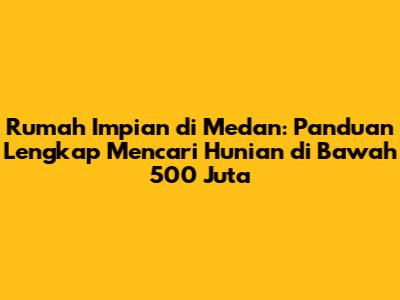 Mencari rumah di Medan dibawah 500 juta memang membutuhkan usaha dan kesabaran. Namun, dengan tips dan informasi yang telah kamu dapatkan di artikel ini, kamu akan lebih siap untuk mewujudkan impian memiliki hunian idaman di kota Medan. Jangan tunda lagi, guys! Mulailah pencarianmu sekarang dan temukan rumah impianmu!