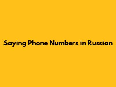 Saying Phone Numbers In Russian