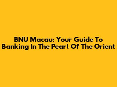 BNU Macau: Your Guide To Banking In The Pearl Of The Orient