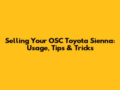 Selling Your OSC Toyota Sienna: Usage, Tips & Tricks
