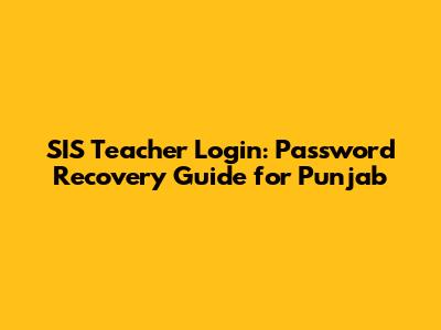 SIS Teacher Login: Password Recovery Guide For Punjab