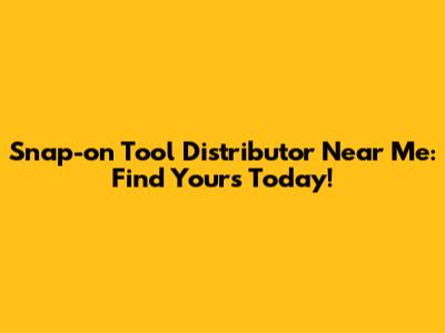 Snap-on Tool Distributor Near Me: Find Yours Today!