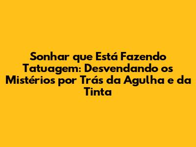 Sonhar que está fazendo tatuagem é um sonho cheio de simbolismos e significados. A interpretação desse sonho depende de diversos fatores, como o desenho da tatuagem, as cores, a dor, o contexto e os seus sentimentos. Preste atenção aos detalhes, confie em sua intuição e não tenha medo de explorar o mundo dos sonhos. Lembre-se que os sonhos são como mensagens do seu subconsciente, que podem te ajudar a entender melhor a si mesmo e a tomar decisões mais conscientes em sua vida. Então, da próxima vez que você sonhar que está fazendo uma tatuagem, anote todos os detalhes e comece a desvendar os mistérios que o seu subconsciente tem a revelar! E aí, qual foi a sua experiência com esse tipo de sonho? Compartilhe nos comentários! 😉