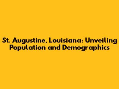 Hey there, folks! Ever wondered about the population of St. Augustine, Louisiana? Well, you're in the right place! We're diving deep into the heart of this charming Louisiana locale to uncover its demographics, history, and all the juicy details that make it unique. Let's get started, shall we?