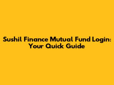 Sushil Finance Mutual Fund Login: Your Quick Guide