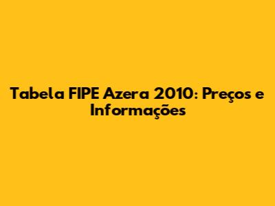 Tabela FIPE Azera 2010: Preços E Informações