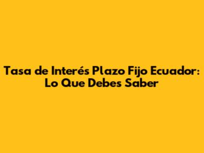 ¿Qué es un Plazo Fijo y Cómo Funciona la Tasa de Interés en Ecuador?