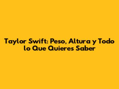¡Hola, fans de Taylor Swift! ¿Están listos para sumergirse en el fascinante mundo de nuestra querida Taylor? En este artículo, vamos a explorar todo sobre Taylor Swift: su peso, altura y mucho más. Prepárense para descubrir datos curiosos y detalles interesantes sobre la vida de esta icónica artista. ¡Empecemos!