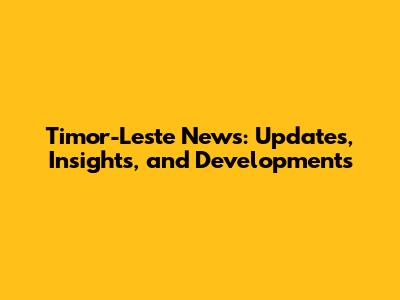 Timor-Leste News: Updates, Insights, And Developments