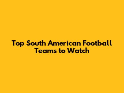Top South American Football Teams To Watch