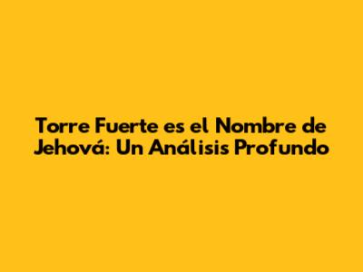 Torre Fuerte Es El Nombre De Jehová: Un Análisis Profundo