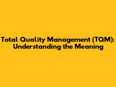 Total Quality Management (TQM): Understanding The Meaning