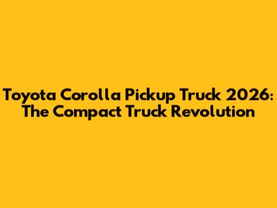 Hey guys! Are you ready for a game-changer in the world of pickup trucks? Let's dive into the buzz surrounding the Toyota Corolla Pickup Truck 2026. Yes, you heard that right! Toyota might just be blessing us with a compact pickup that blends the reliability of the Corolla with the utility of a truck. Imagine the possibilities! This article will explore everything we know so far, speculate on what's to come, and why this could be the perfect vehicle for many of you.