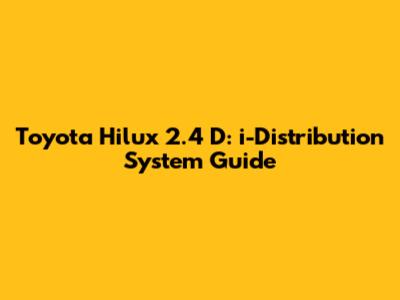 Understanding the i-Distribution System in Your Toyota Hilux 2.4 D