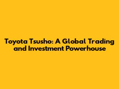 Toyota Tsusho: A Global Trading And Investment Powerhouse