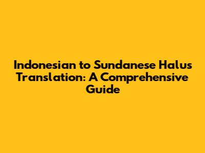 Translate Indonesian To Sundanese Halus: A Guide