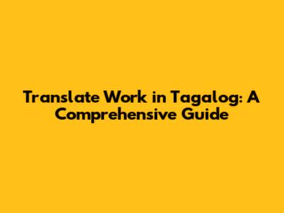 Translate Work In Tagalog: A Comprehensive Guide