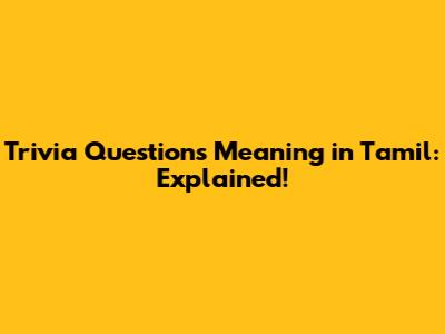 Trivia Questions Meaning In Tamil: Explained!