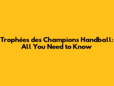 Trophées Des Champions Handball: All You Need To Know