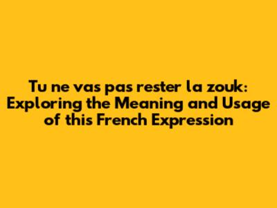 Cultural Significance and Modern Usage of "Tu ne vas pas rester la zouk"