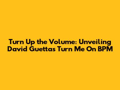 Turn Up The Volume: Unveiling David Guetta's 'Turn Me On' BPM