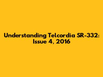 Understanding Telcordia SR-332: Issue 4, 2016