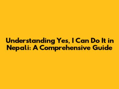 Understanding 'Yes, I Can Do It' In Nepali