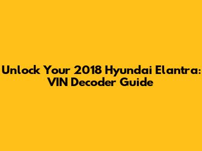 Unlock Your 2018 Hyundai Elantra: VIN Decoder Guide