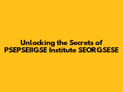 Unlocking The Secrets Of PSEPSEIIGSE Institute SEORGSESE
