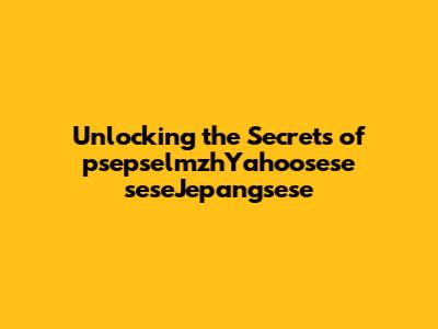 Unlocking The Secrets Of PsepselmzhYahoosese SeseJepangsese