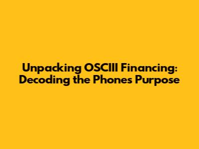 Unpacking OSCIII Financing: Decoding The Phone's Purpose