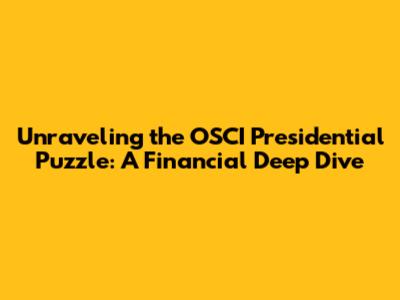 Unraveling The OSCI Presidential Puzzle: A Financial Deep Dive