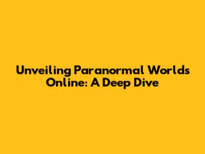 Unveiling Paranormal Worlds Online: A Deep Dive