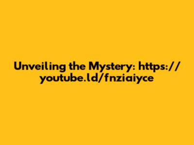 Unveiling The Mystery: Https://youtube.ld/fnziaiyce