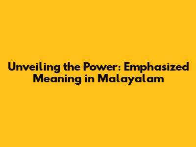 Unveiling The Power: Emphasized Meaning In Malayalam