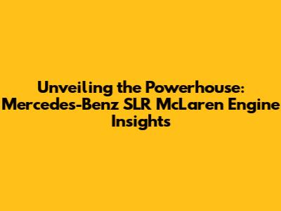 Unveiling The Powerhouse: Mercedes-Benz SLR McLaren Engine Insights