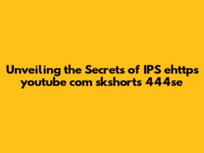 Unveiling The Secrets Of IPS Ehttps Youtube Com Skshorts 444se
