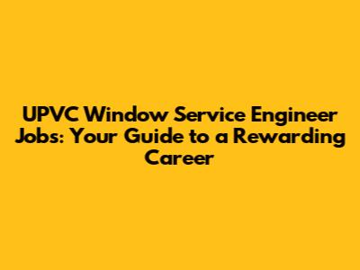 UPVC Window Service Engineer Jobs: A Comprehensive Guide