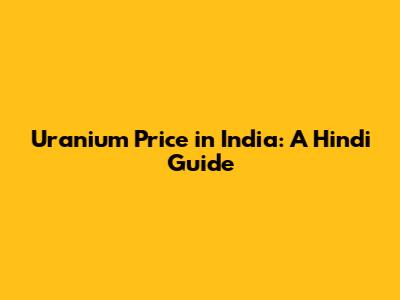 Uranium Price In India: A Hindi Guide