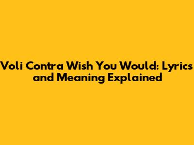 Hey guys! Today, let's dive deep into the catchy and emotionally charged track, "Wish You Would" by Voli Contra. This song has been making waves, and for good reason! Its blend of heartfelt lyrics and infectious beats really hits home. Whether you're already a fan or just discovering Voli Contra, this breakdown will give you a comprehensive understanding of the song's themes, lyrics, and overall impact.