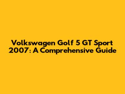 Volkswagen Golf 5 GT Sport 2007: A Comprehensive Guide