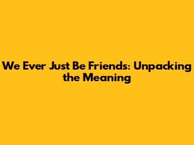 We Ever Just Be Friends: Unpacking The Meaning