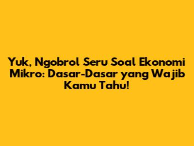 Yuk, Ngobrol Seru Soal Ekonomi Mikro: Dasar-Dasar Yang Wajib Kamu Tahu!