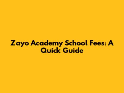 Zayo Academy School Fees: A Quick Guide